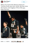 And the utterly ironic thing is I’ve seen repeated tumblr posts of that iconic photo absolutely slagging the shit out of Peter Norman as “lol white guy so uncomfortable” “Why the fuck isn’t he supporting them”, etc etc.