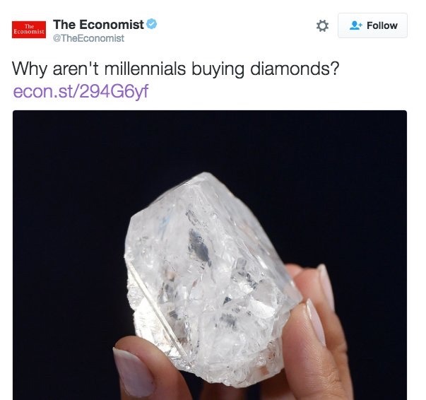4) we get excited when our date buys us an appetizer, we don’t even comprehend people buying us rocks that would force us into debt for ten years