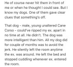Do you know how many dogs I’ve met that get scared or anxious around men because in their previous home men hit them? A lot, and they are very protective of the women who have adopted them now.